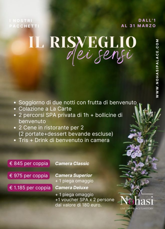 Potrai godere di momenti unici in Nohasi Palace Hotel dove il tempo si ferma solo per dare spazio al tuo benessere. Una preziosa dimora storica di eterna bellezza finemente ristrutturata, dove ambienti raffinati e intrisi di storia e tradizioni ti trasporteranno in un’altra dimensione: il passato e il futuro si annullano, conta solo il presente, il tuo.