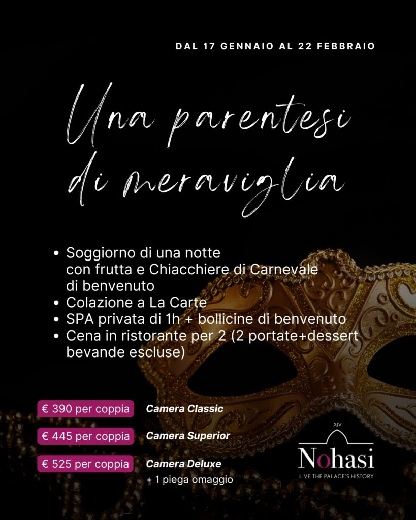 • Il soggiorno di una notte in una delle nostre bellissime camere con colazione inclusa e frutta e chiacchiere di Carnevale di benvenuto